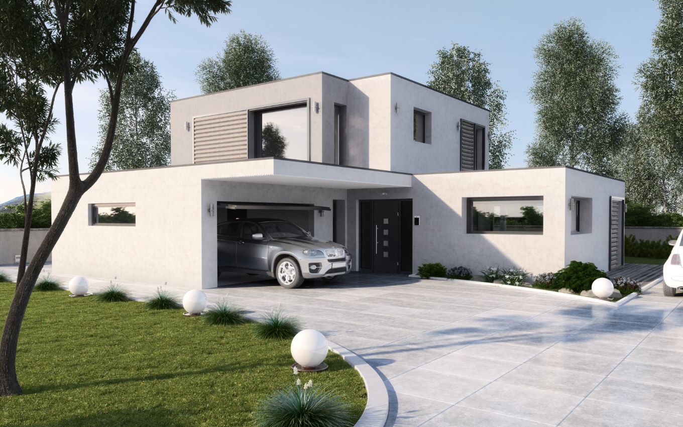 Ses jeux de volumes et sa toiture terrasse accentuent son style résolument contemporain tout en permettant de profiter pleinement de l’étage.